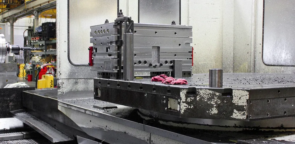 ۳. ماشینکاری: عملیات تراشکاری، فرزکاری، سنگزنی و اسپارک برای ساخت اجزای قالب انجام میشود.